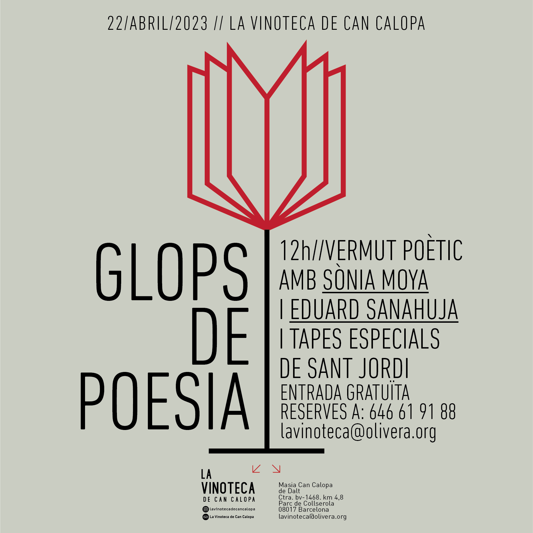 Dissabte 22 d’abril, a La Vinoteca prologuem el dia Sant Jordi amb una festa literària. Ens sumem als actes que durant aquell cap de setmana s’organitzaran arreu del país amb una jornada carregada de versos, vi i bona cuina.